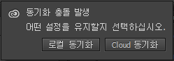 이 컴퓨터의 로컬 설정을 Creative Cloud에 동기화합니다. 로컬 버전의 설정으로 Creative Cloud 버전을 덮어씁니다.