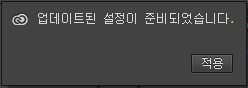 - [업데이트된 설정이 준비되었습니다] 대화 상자에서 [적용]을 클릭하여 현재 환경 설정을 다운로드된 사본으로 재정의합니다.