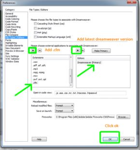 편집기에 해당하는 [추가(+)] 단추를 클릭합니다. Program Files 폴더에서 Dreamweaver EXE 파일이 들어 있는 폴더로 이동합니다. Dreamweaver EXE 파일을 선택하고 [확인]을 클릭합니다.
