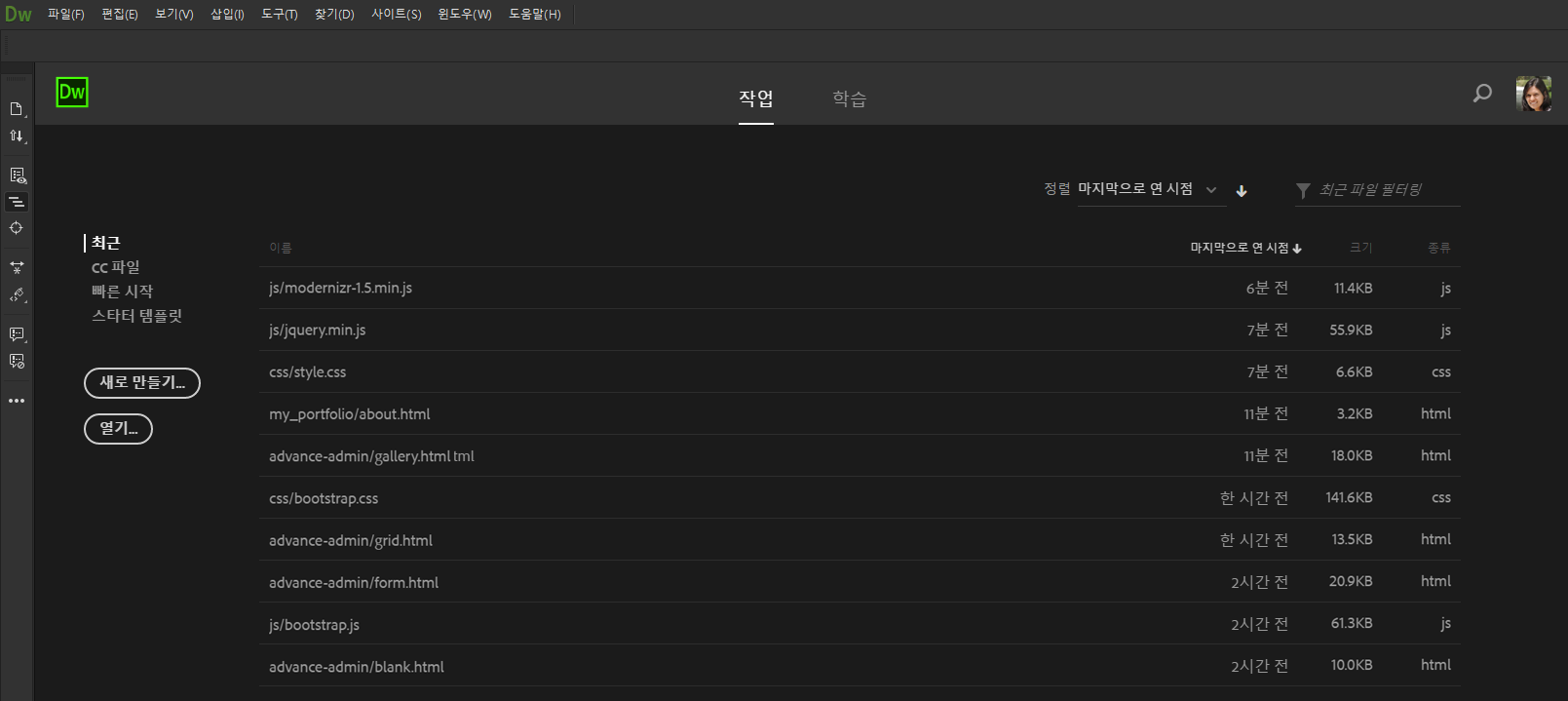 - Dreamweaver 및 Creative Cloud