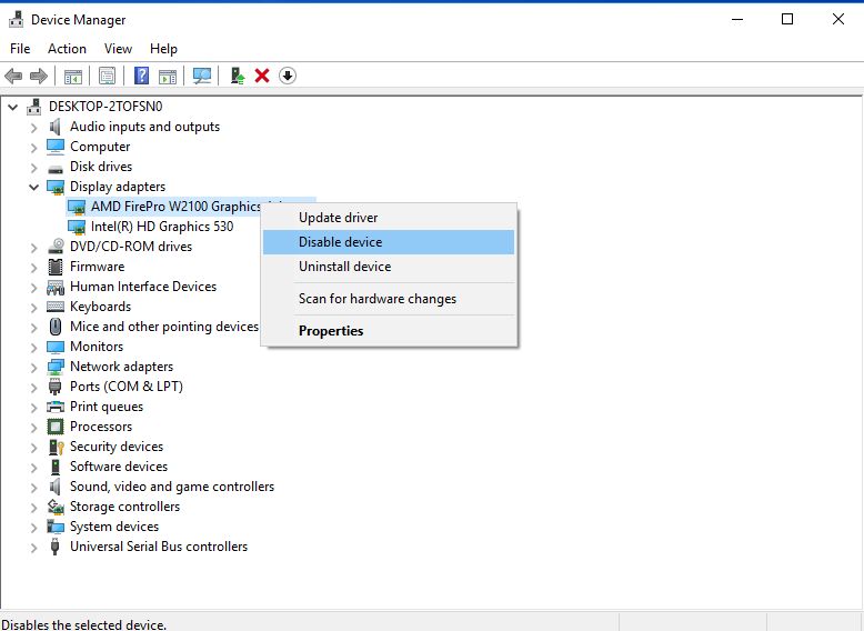 비Intel 그래픽 카드(보통 Nvidia 또는 AMD)를 마우스 오른쪽 단추로 클릭하고 '장치 사용 안 함'을 선택합니다.