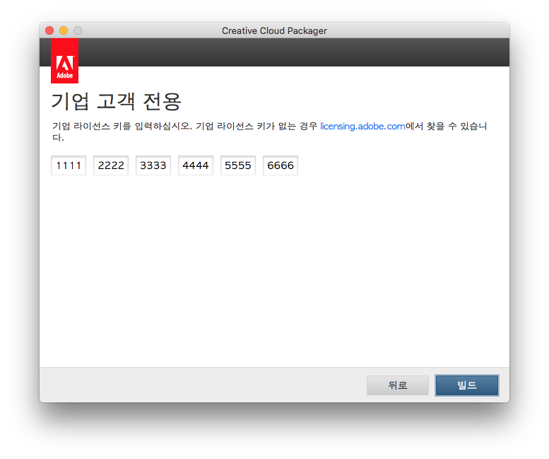 Adobe는 Creative Cloud Packager에서 Creative Cloud for enterprise 시리얼 번호를 사용할 것을 권장합니다.