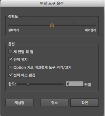 이 확인란을 선택하면, 연필 도구나 브러시 도구를 사용할 때, Alt(Mac: Option) 키를 눌러 매끄럽게 도구로 전환할 수 있습니다.