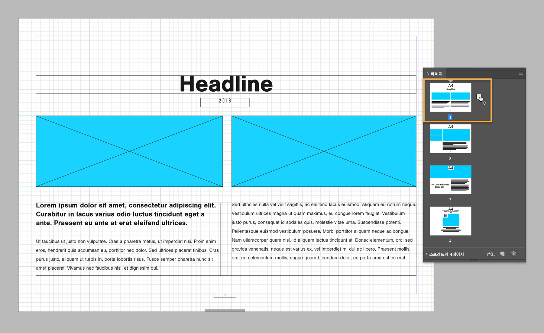 이 방식으로 여러 페이지 레이아웃 스토리보드를 만들었습니다.