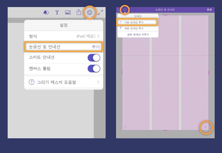 설정 > 눈금선 및 안내선 > 추가를 차례로 누릅니다.
