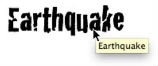 예를 들어 지진에 관한 웹 사이트를 디자인하는 경우 페이지 머리글이 디자인 주제에 맞도록 흔들리거나 갈라진 모양의 글꼴을 설치할 수 있습니다. 설치한 모든 글꼴을 Adobe Muse에서 사용할 수 있기 때문에 페이지 레이아웃에 제한이 없으며 페이지를 맞춤화할 수 있습니다. 또는 해당 사이트의 맞춤형 글꼴을 사용할 수도 있습니다. 시스템 글꼴에는 독특한 글꼴이 많이 제공되기 때문에 페이지를 보다 멋지게 꾸밀 수 있습니다.