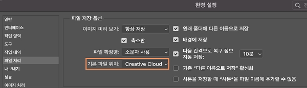 - Windows: 편집 > 환경 설정 > 파일 처리
