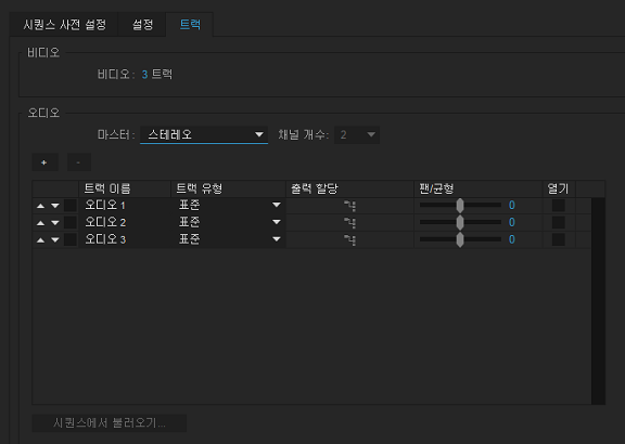 Premiere는 여러 유형의 오디오 트랙을 지원합니다.