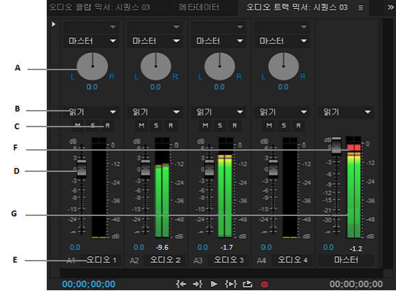 - 오디오 트랙 믹서는 모든 트랙에 대한 실시간 볼륨 제어 및 측정을 제공합니다.