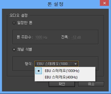 Premiere Pro는 -20dB 진폭으로 [색상 막대 및 톤] 클립을 만드는 데 사용할 수 있는 새로운 톤 설정 대화 상자를 제공합니다.