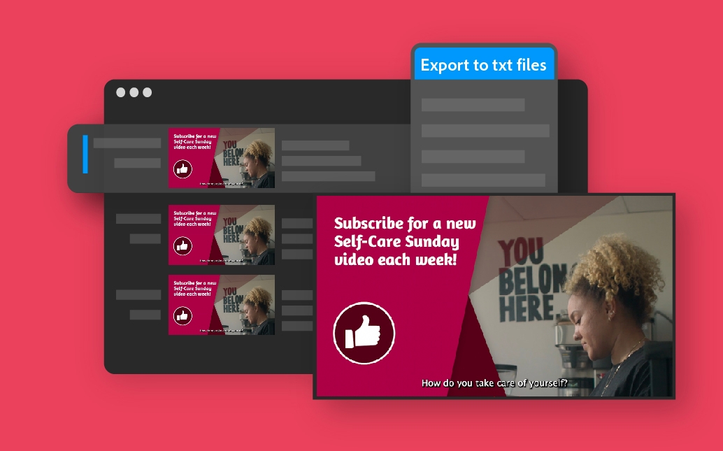 이제 텍스트 패널에서 시퀀스의 모든 타이틀을 텍스트 파일로 내보내어 공유, 교정할 수 있습니다.