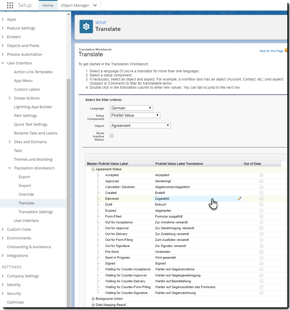 이 UI는 사용자 정의 개체 Agreement_Document_Storage_Type__c에 매핑됩니다.