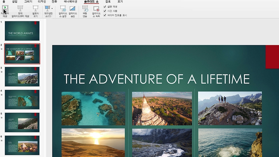 재생 버튼을 클릭하여 이 슬라이드를 로드하면 자동 재생되도록 설정합니다.