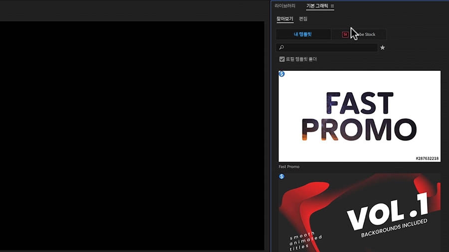 참고: www.stock.adobe.com 또는 Premiere Pro의 기본 그래픽 패널에서 온라인으로 동일한 템플릿을 검색하고 라이선스를 부여할 수 있습니다.
