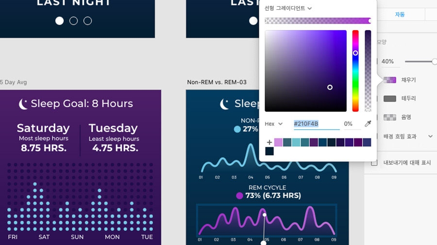 데이터를 알기 쉽게 표시하고 인터랙션이 수월한 모바일 디자인이 완성되었습니다.