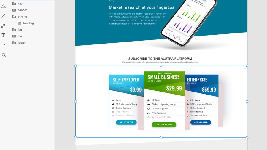 Adobe Stock 템플릿 필터를 선택하고 "pricing comparison"을 검색합니다.