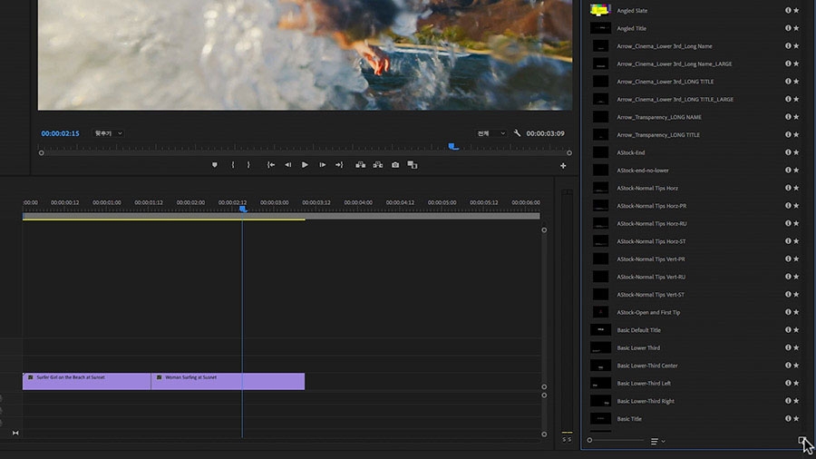 참고: Premiere Pro의 라이브러리 패널에서 바로 검색하고 라이선스를 부여할 수 있습니다.
