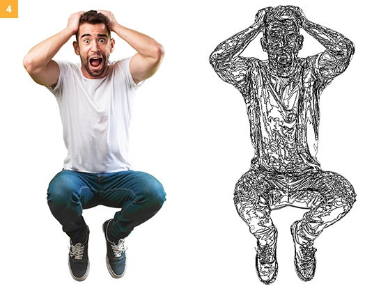 수채화나 펜 및 잉크와 같은 단색 일러스트레이션을 추적하는 것과 같이 특수한 경우에만 자동 추적을 사용하는 것이 좋습니다. 구매자가 색상 및 기타 요소를 변경할 수 있다는 사실을 고려해야 합니다. 트레이싱은 수천 개의 패스와 고정점으로 구성되어 있으므로 자동 추적으로 인해 변경 작업이 어려워질 수 있습니다. 사진과 같은 복잡한 이미지에는 자동 추적을 사용하지 않아야 합니다. 예를 들어 구매자가 이 트레이싱에서 남자의 셔츠 색상을 바꾸고 싶은 경우를 생각해 보십시오.