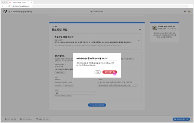 - 튜토리얼이 큐레이터에게 성공적으로 전송되었는지 확인하는 대화 상자가 표시됩니다.