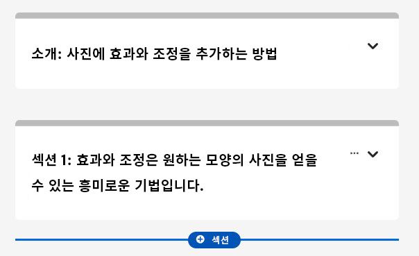 - 인트로와 섹션 1 사이에는 섹션을 추가할 수 없습니다.