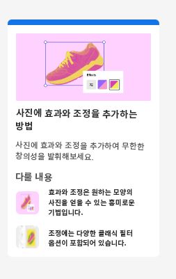 섹션마다 사용자에게 튜토리얼 전반에서 따라야 하는 단계를 제공합니다. 각 단계는 사용자 작업과 사용된 해당 도구 또는 기능을 설명해야 합니다.