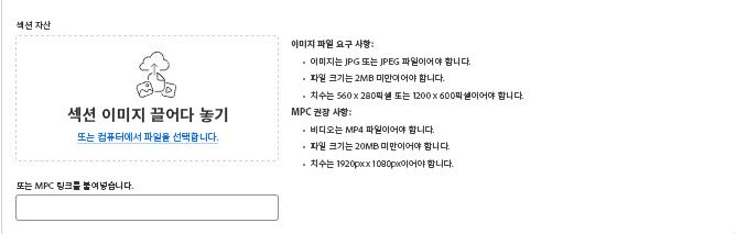 - 섹션 에셋으로 이미지와 영상을 동시에 사용할 수 없습니다. 하나만 선택하세요.