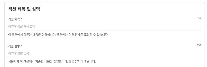 - 섹션 변경 사항 저장 버튼은 모든 필수 필드가 작성되었을 때만 활성화됩니다.