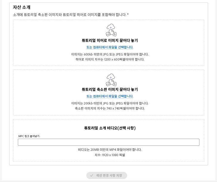 - 에셋을 업로드했다면 활성화된 섹션 변경 사항 저장 버튼을 클릭합니다.
