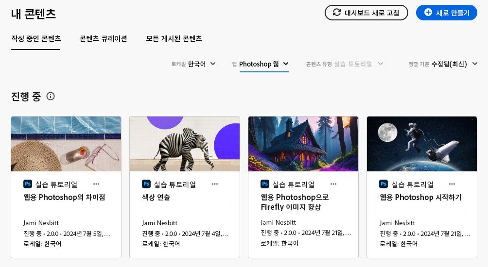 TBW는 LCP(콘텐츠 학습 포털)에 포함되어 있습니다. TBW에서 튜토리얼을 만들려면 LCP 로그인이 필요합니다. 로그인한 후 내 콘텐츠에서 진행 중이거나 게시된 튜토리얼을 확인하세요. 다양한 디바이스와 제품에서 작업한다면 필터를 이용하여 원하는 튜토리얼을 찾을 수 있습니다.