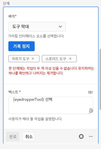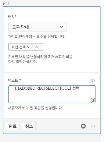 - 튜토리얼을 만들면서 도움이 필요한 경우, 먼저 Tutorial Builder 상단의 저장 버튼을 클릭하여 지금까지 작성한 작업 내용을 보존하세요.