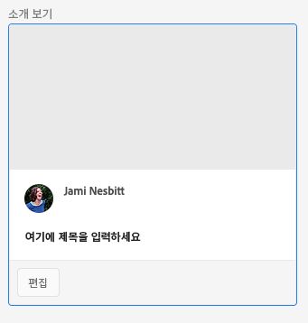 - 파일 선택을 클릭하고 준비한 히어로 이미지(1200x600 px jpeg)로 이동합니다. 업로드된 히어로 이미지가 소개 보기 상단에 표시됩니다.