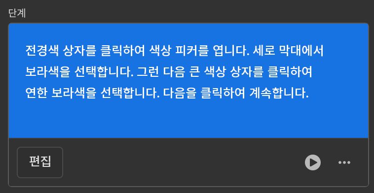 튜토리얼 작성에 필요한 섹션과 단계를 만듭니다. 4개 이하의 섹션과 섹션당 5개 이하의 단계를 목표로 합니다. Tutorial Builder 문구 작성 가이드라인을 확인하세요.
