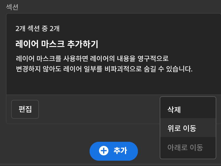 - 섹션과 단계를 삭제하거나 이동하려면 섹션 아래에 있는 세 개의 점을 클릭하고 삭제, 위로 이동, 아래로 이동을 선택합니다.