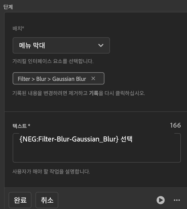 - 원하는 결과가 아니라면 단계를 취소하거나 삭제하고 다시 기록하세요.