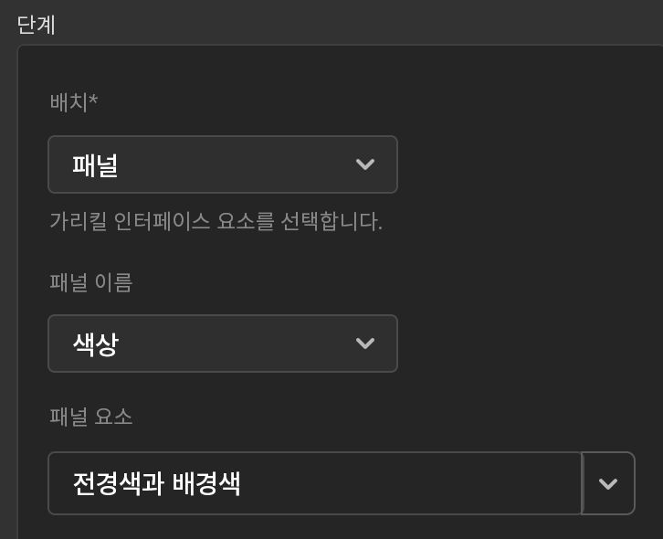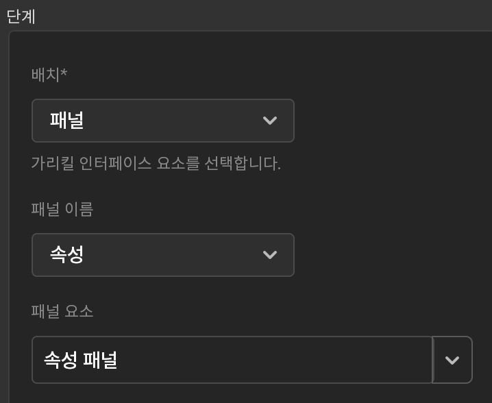 - 섹션 설명 아래 파란색 추가 버튼을 클릭하고 단계를 선택합니다.