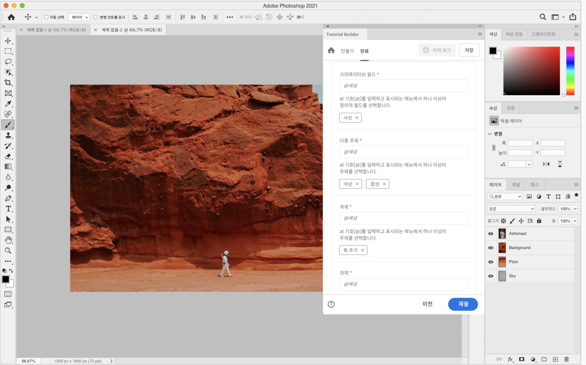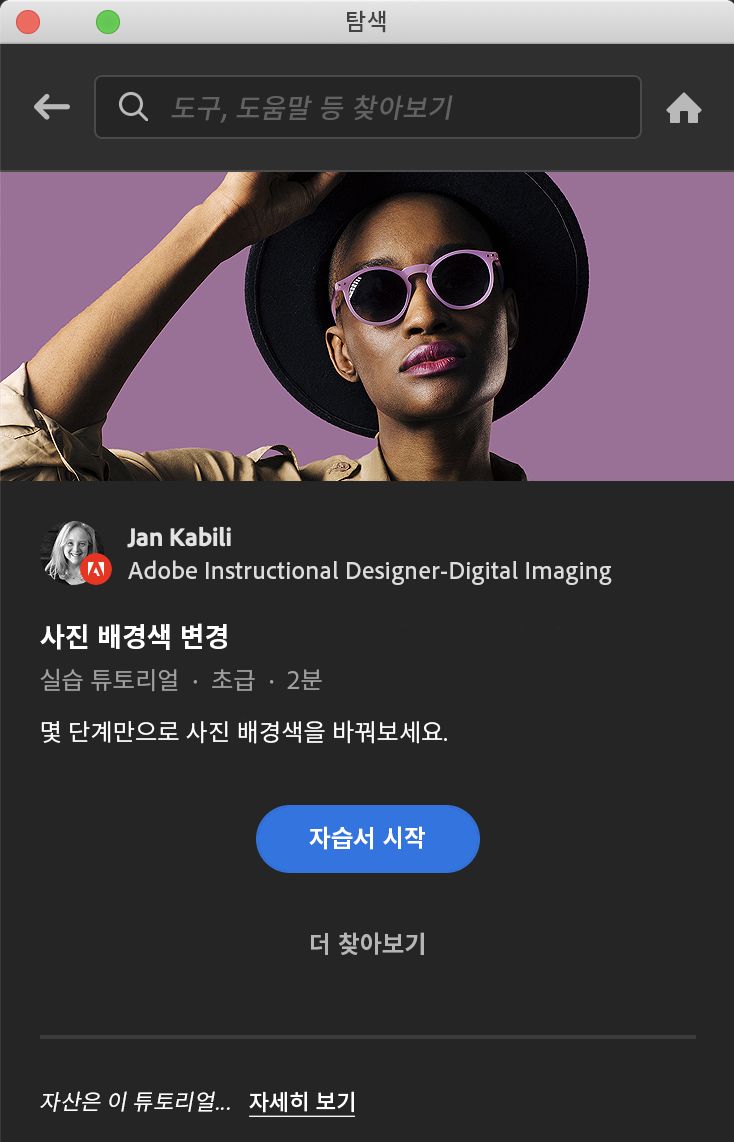 중요 팁: 시작 파일을 업로드할 때까지 튜토리얼을 미리 볼 수 없습니다. 언제든지 완료 탭으로 이동하여 시작 파일을 업로드할 수 있습니다.- 시작 파일 요구 사항은 [Ps] 에셋 가이드라인과 [Ps] 이미지 사양을 참조하세요.