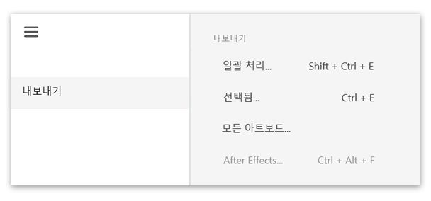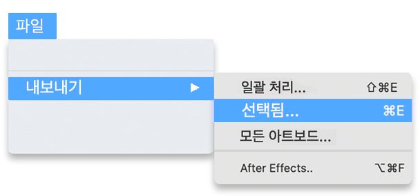오브젝트 또는 아트보드를 선택하고 파일 > 내보내기로 이동하거나 Cmd + E를 누릅니다.