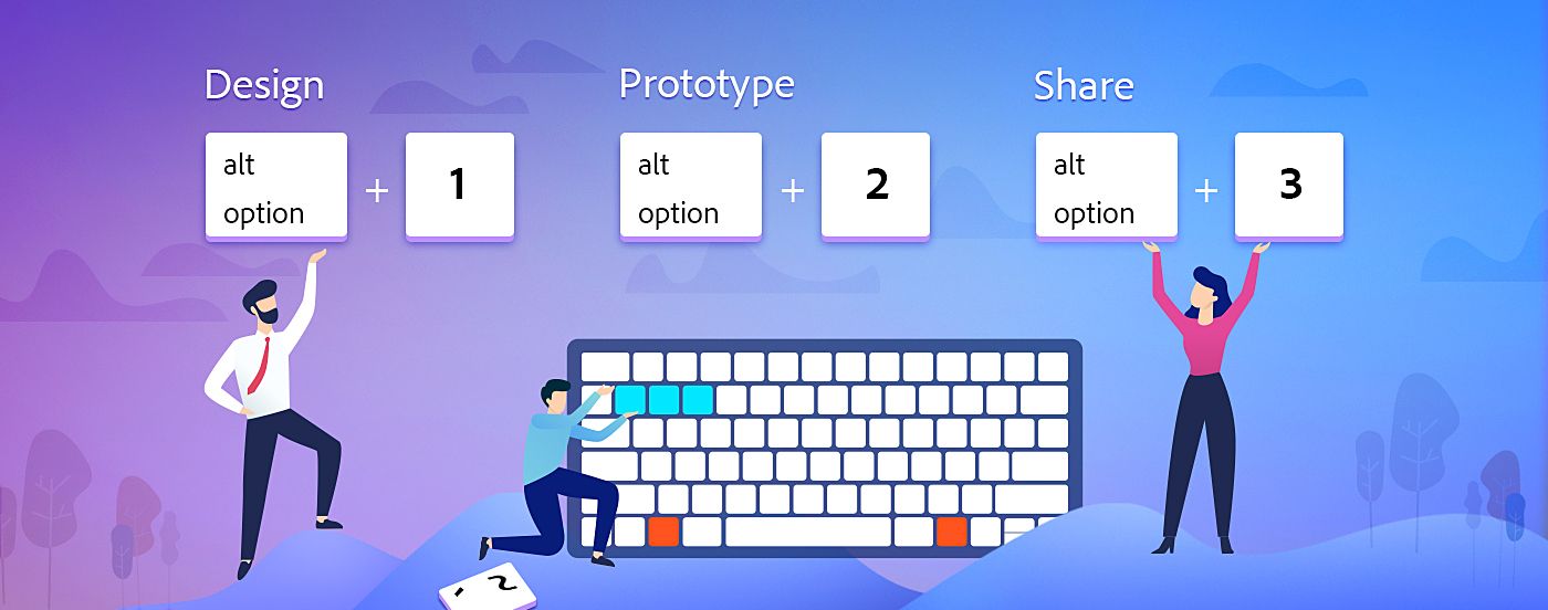 - Windows에서는 각각 Alt + 1, Alt + 2 및 Alt + 3을 사용하여 디자인 모드, 프로토타입 모드 및 공유 모드로 전환합니다.