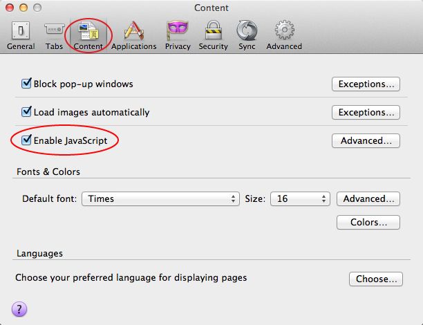 Asegúrese de que Activar JavaScript esté seleccionado en la ficha Preferencias > Seguridad de Safari. Asegúrese de que Activar JavaScript esté seleccionado en la ficha Preferencias > Seguridad de Safari. -