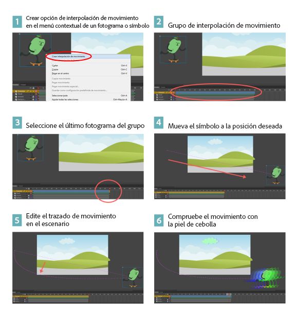 Puede crear una interpolación de movimiento con uno de los tres métodos siguientes: