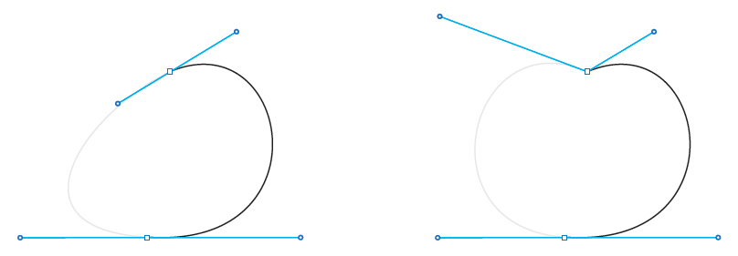 Mejora: en Illustrator CC 2014, presione Cmd/Ctrl mientras arrastra los manejadores de un punto suave para que dejen de ser iguales en términos de longitud (el emparejamiento no se ve afectado por esta acción). La ventaja de es que, a partir de ahora, tendrá un mayor control sobre el siguiente segmento de curva que vaya a crear.