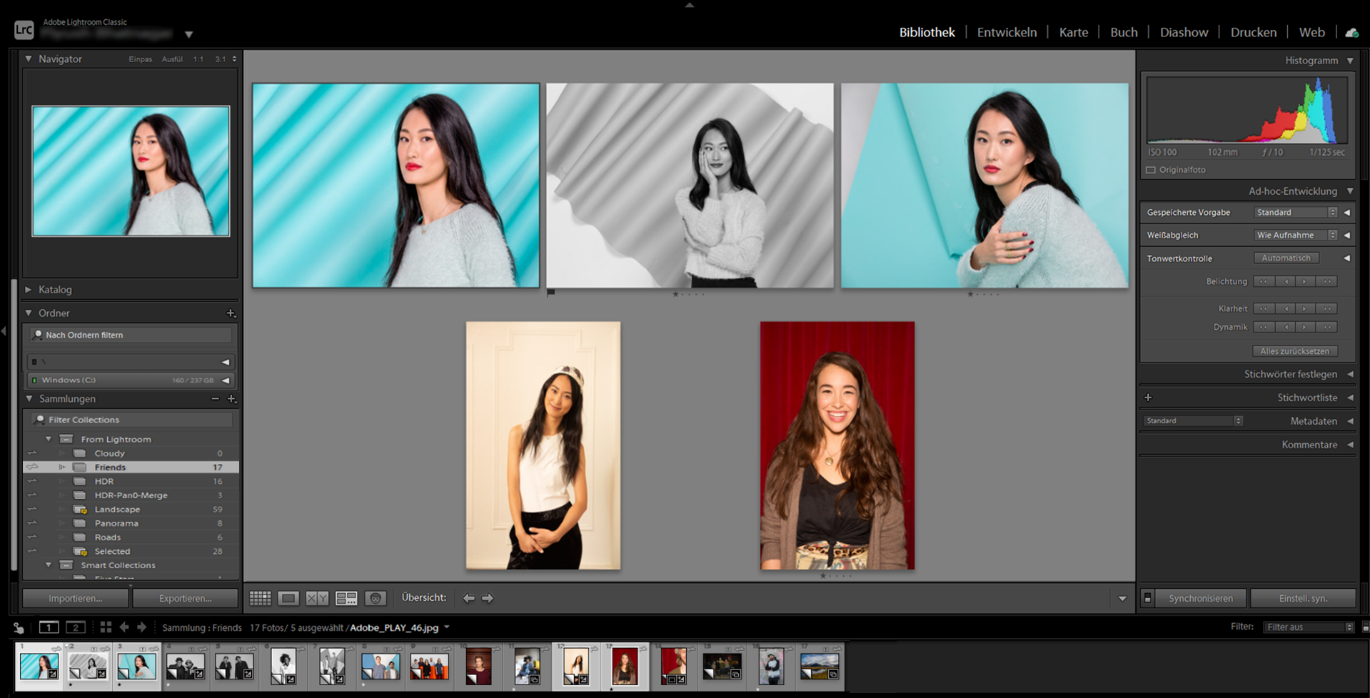 A partir de la versión de febrero de 2022 (versión 11.2), disfrute de una mayor capacidad de respuesta en el módulo Biblioteca, especialmente para acciones multitarea. Aplique un ajuste preestablecido a un conjunto de imágenes (edición por lotes) al tiempo que navegae o busca carpetas o colecciones, y aplique también filtros de metadatos.