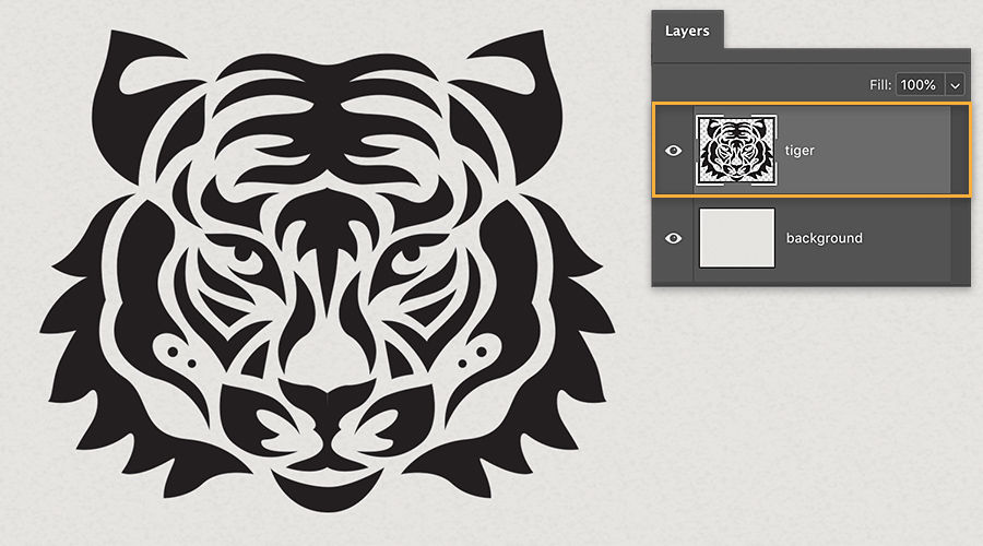 Lukianova added a drawing of a tiger head as a new layer to a Photoshop document.