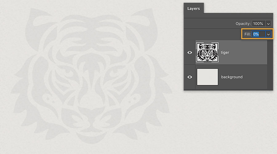 In order to apply a layer style to her drawing, Lukianova set the Fill to 0 for the tiger layer.