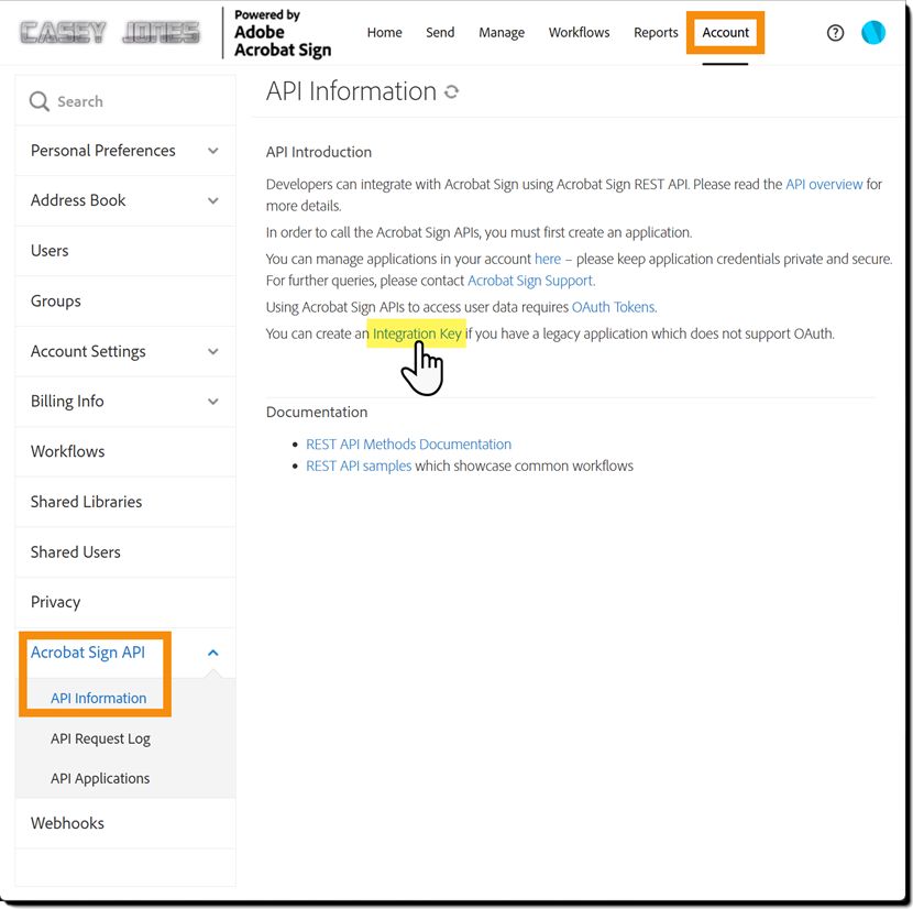 Navigiere zu : Konto > Acrobat Sign-API > API-Informationen