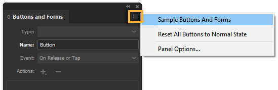 Choose Window > Interactive > Buttons and Forms to display the Buttons and Forms panel.
