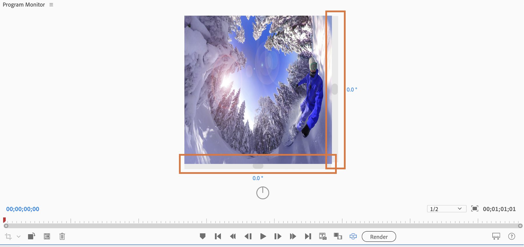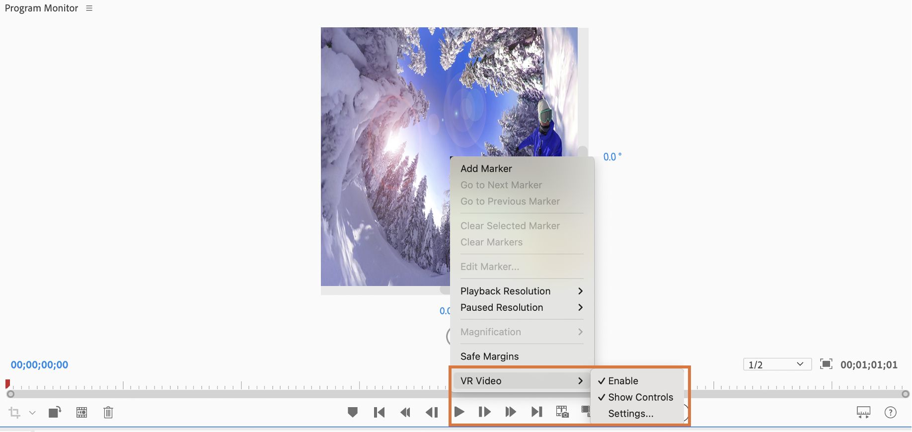 NoteThe Program Monitor setting options for VR Video are disabled if your content does not have VR properties.
