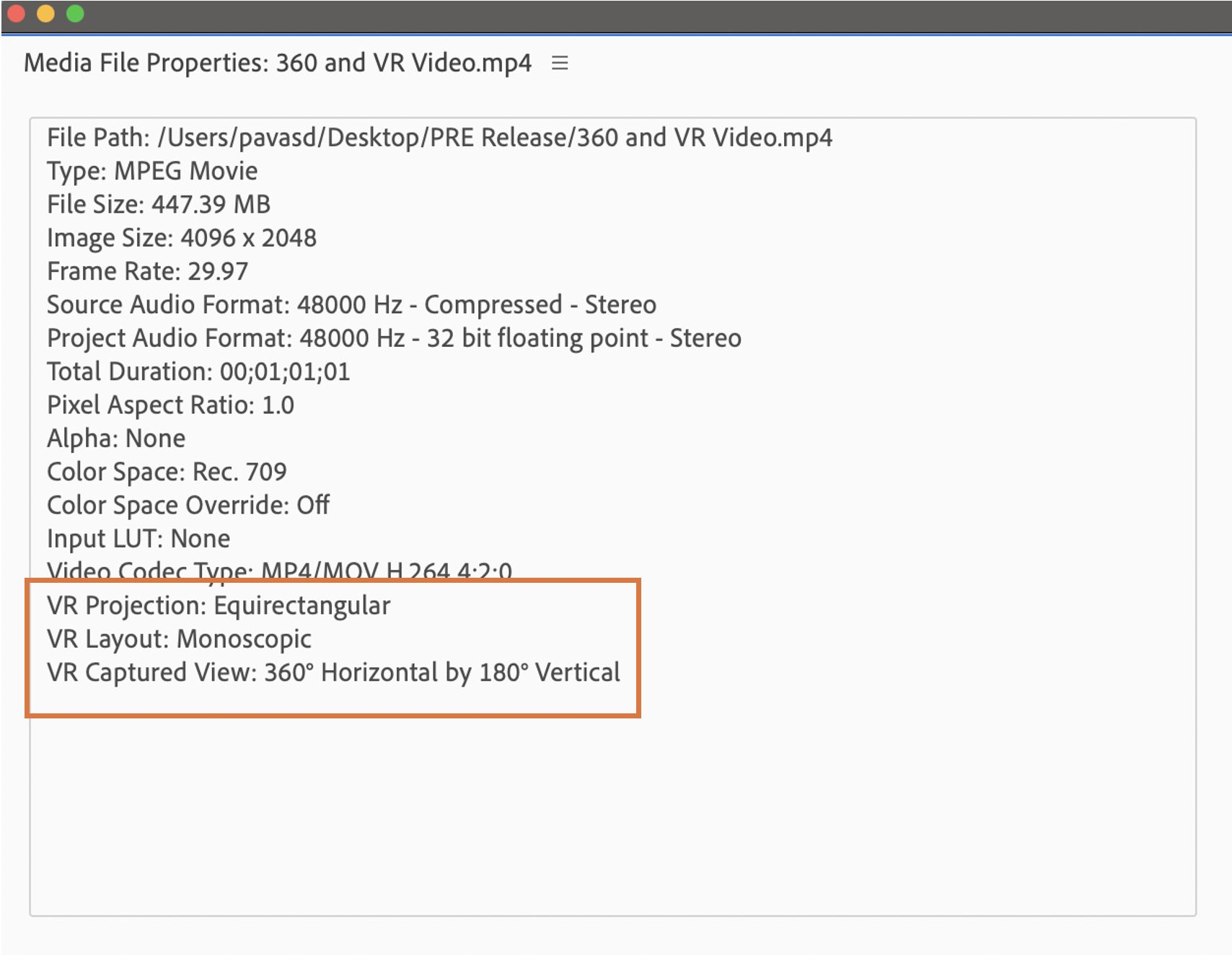 - When the VR Projection, VR Layout, or VR Captured View properties are present but set to incorrect values.