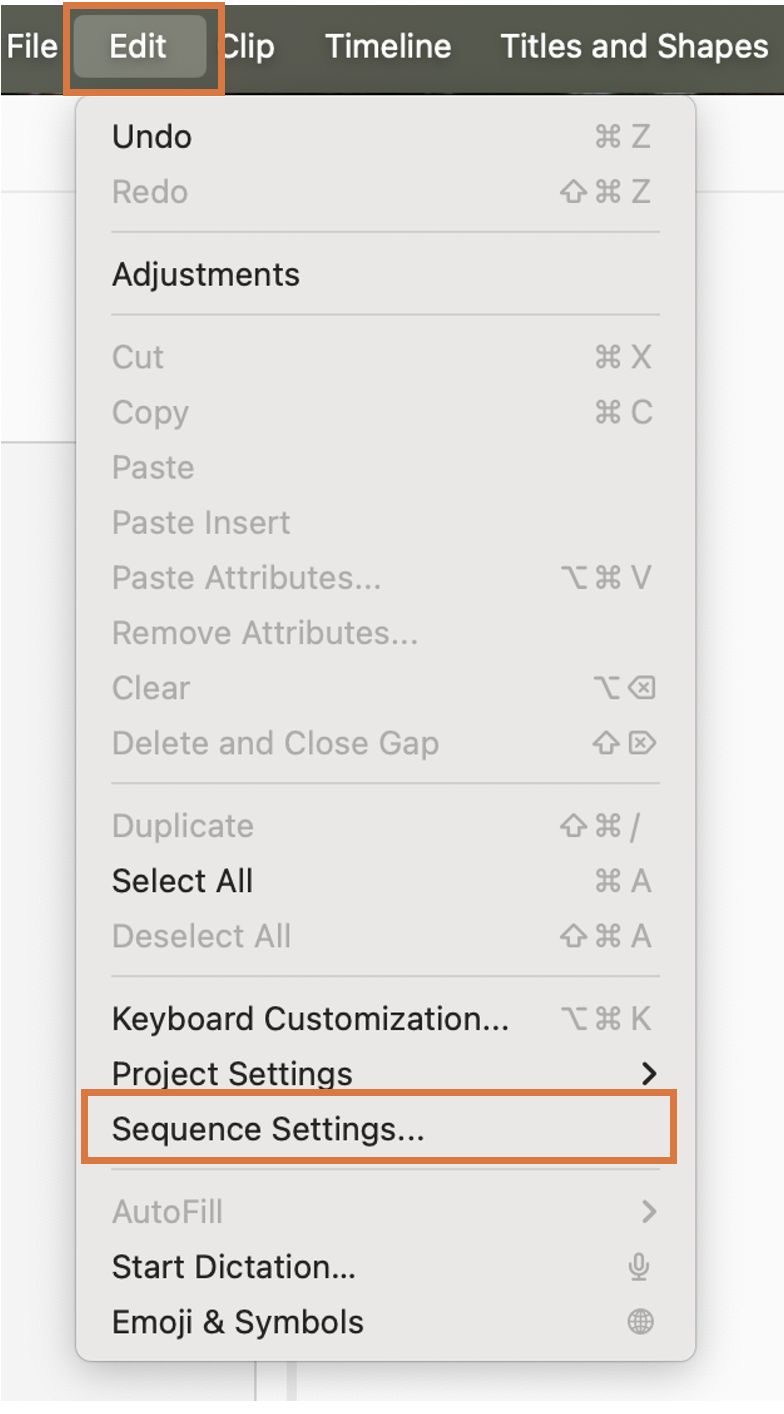 With the sequence selected and open in the Timeline panel, go to Edit > Sequence Settings.