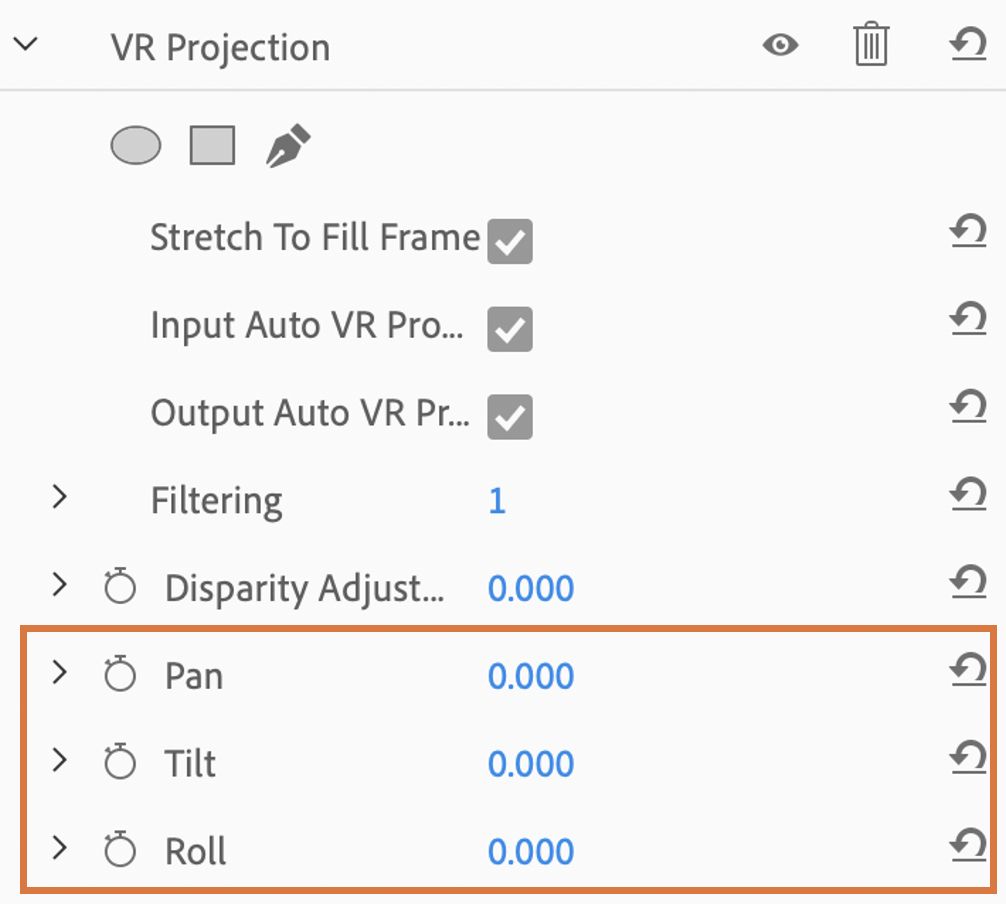 After positioning the video, use the same numeric values from the VR Projection effect and apply them to the Pan, Tilt, and Roll sliders in the Panner - Ambisonics effect.